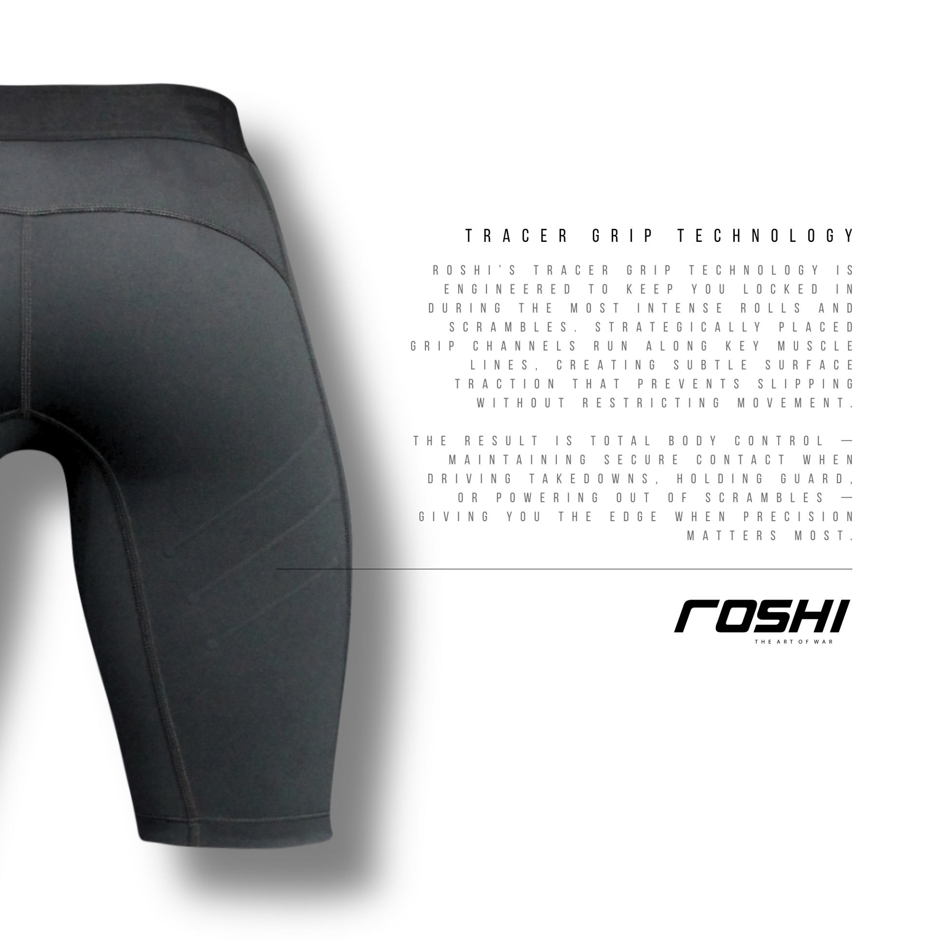 Made from elite-grade 6-way stretch compression fabric, Roshi shorts maintain muscle support and blood flow while allowing unrestricted movement for explosive scrambles, fast guard transitions, and deep positional holds. Reinforced flatlock seams resist tearing through the grind of daily fight camps, while moisture-wicking fibers keep you cool and dry under the lights.